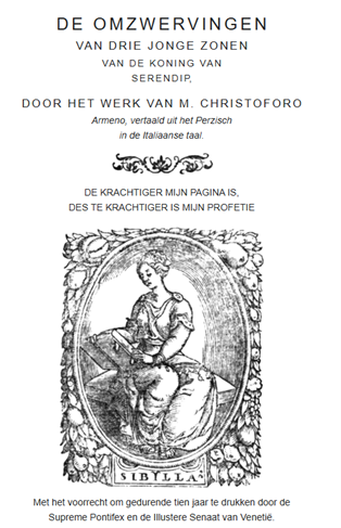 De eerste geschreven bron is te vinden in De acht verhalen van het Paradijs (1301), het meesterwerk van Amir Khusrau, de grootste auteur van de Perzische cultuur. Midden zestiende eeuw herschreef Christoforo Armeno, een vluchteling in Venetië (Turken en Perzen vochten toen om Armenië), het als The three princes of Serendip.